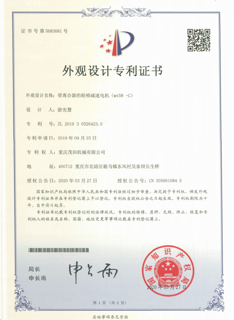 重慶茂田機(jī)械有限公司是國家級小巨人企業(yè)、國家高新技術(shù)企業(yè)、重慶市專精特新企業(yè)、重慶市知識產(chǎn)權(quán)優(yōu)勢企業(yè),致力于現(xiàn)代化山地農(nóng)業(yè)機(jī)械、各類非標(biāo)減速電機(jī)及其控制系統(tǒng)的研發(fā)、生產(chǎn)、銷售。擁有重慶市市級研發(fā)平臺1個 目前研發(fā)、生產(chǎn)、銷售產(chǎn)品廣泛應(yīng)用于農(nóng)業(yè)機(jī)械、醫(yī)療康復(fù)設(shè)備、交通代步工具、智能搬運設(shè)備、以及機(jī)器人動力系統(tǒng)等領(lǐng)域。我們的產(chǎn)品具有完整的自主知識產(chǎn)權(quán),擁有多項專利技術(shù)及“重慶